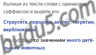 Выпиши из текста слова с одинаковым суффиксом и выдели его.