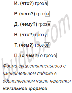 2. Выпишите в столбик слово гроза по порядку падежей (с вопросами). Выделите окончания.