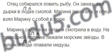 Отец собирался ловить рыбу. Он замазывал дырки в лодке смолой. Марина помогала, и отец взял Марину с собой в море.