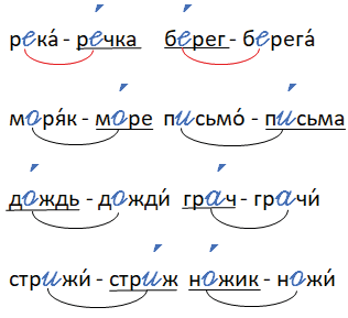 • Соедините линией одинаковые буквы, обозначающие гласные звуки в корне проверочного и проверяемого слов.