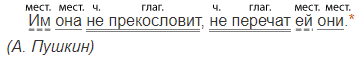 1) Лакей Баклай учил мальчишек «пчелиному языку», таская иногда за волосы, приговаривал: «А ты, мужик, знай: я тебе даю, а барин изволит тебе жаловать; ты ешь, а барин изволит кушать; ты спишь, щенок, а барин изволит почивать». (А. Герцен) 2) Им она не прекословит, не перечат ей они.* (А. Пушкин) 3) Между тем царица* злая, про царевну* вспоминая, не могла простить её*, а на зеркальце* своё* долго дулась и сердилась. (А. Пушкин) 4) Старику захотелось* важных, серьёзных мыслей, хотелось ему не просто думать, а размышлять. (А. Чехов) 5) Клевета и ложь — не одно и то же. (Пословица) 6) А у Ули глаза были большие, тёмно-карие* — не глаза, а очи. (А. Фадеев) 7) Я стал не большим, а огромным. (А. Смеляков) 8) Больше б мог, да было к спеху, тем, однако, дорожи, что, случалось, врал для смеху, никогда не лгал для лжи*. (А. Твардовский)